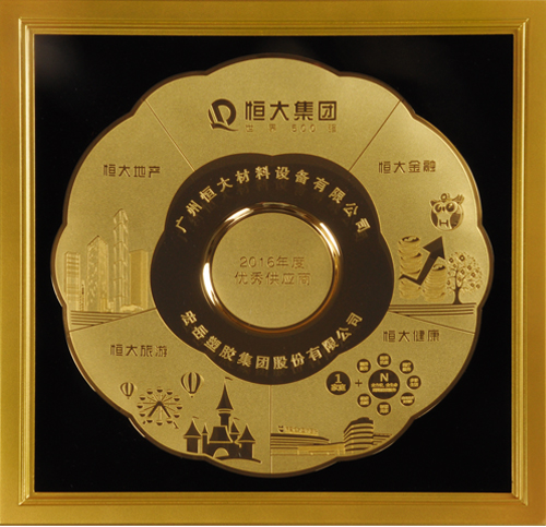 中国·350vip8888新葡的京荣获“恒大集团2016年度材料设备类优秀供应商”殊荣!