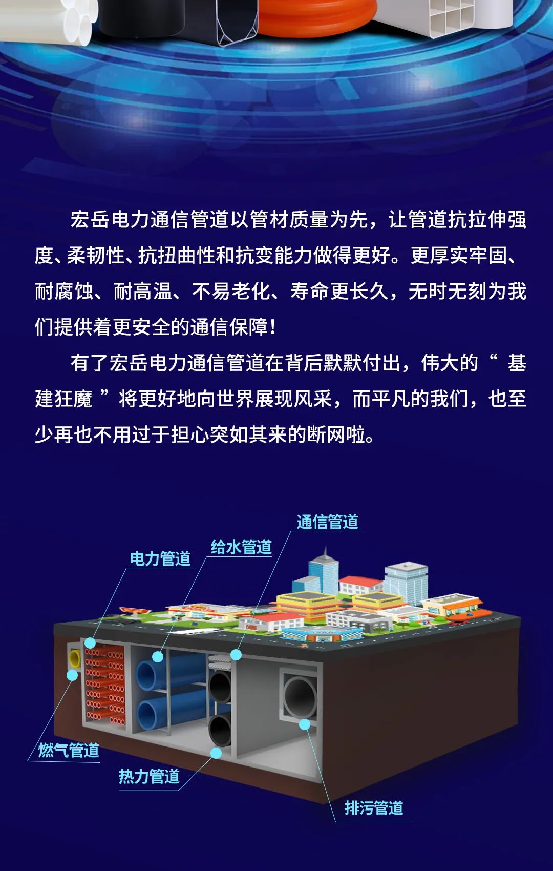 中国·350vip8888新葡的京电力通信管道以管材质量为先,让管道抗拉伸强度、柔韧性、抗扭曲性和抗变能力做的更好。更厚实牢固、耐腐蚀、耐高温、不易老化、寿命更长久,无时无刻为新葡的京提供着更安全的通信保障!