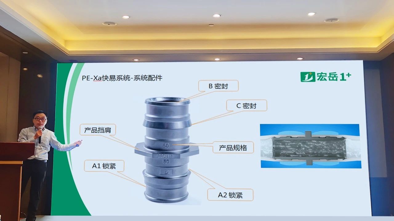 会议现场,中国·350vip8888新葡的京集团高级技术工程师陈工就集团规模概况做简要介绍,并就PE-Xa快易连接系统的特点以及在两联供管路安装上的优势进行详尽讲解。现场展台重点展示了PE-Xa快易连接管道系统,参会者纷纷驻足停留咨询了解、连接实操,此系统连接凭借其简单、快捷、安全的产品及连接优势,受到了与会者们的一致好评!